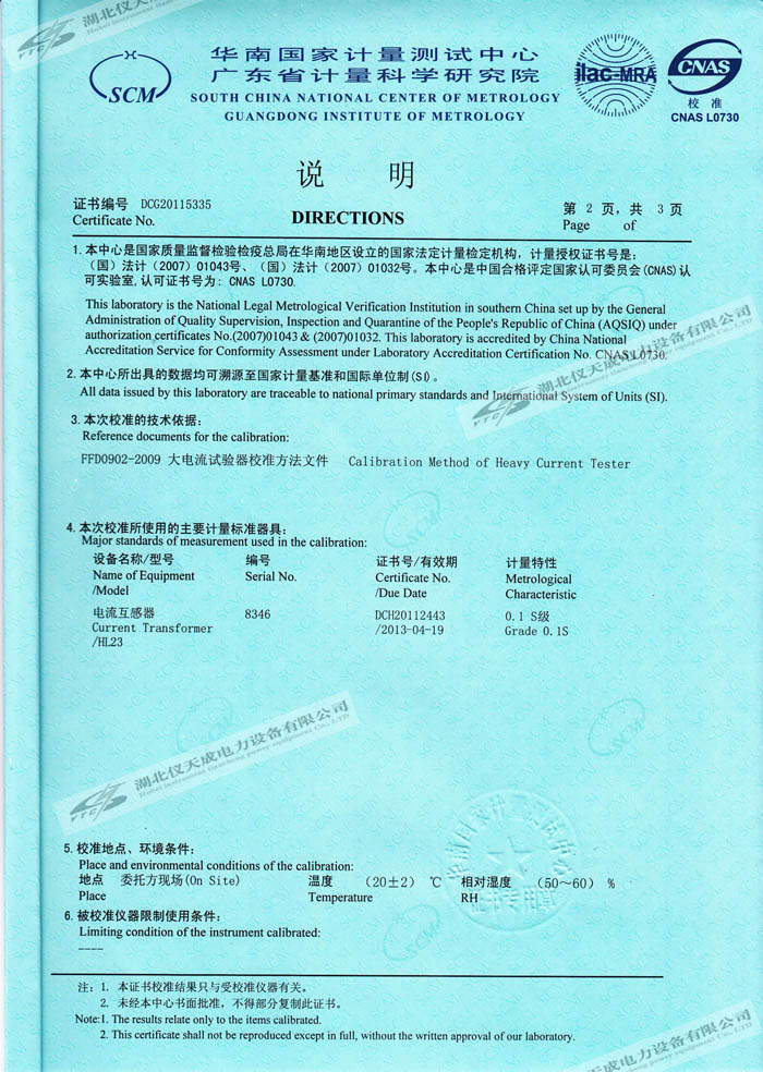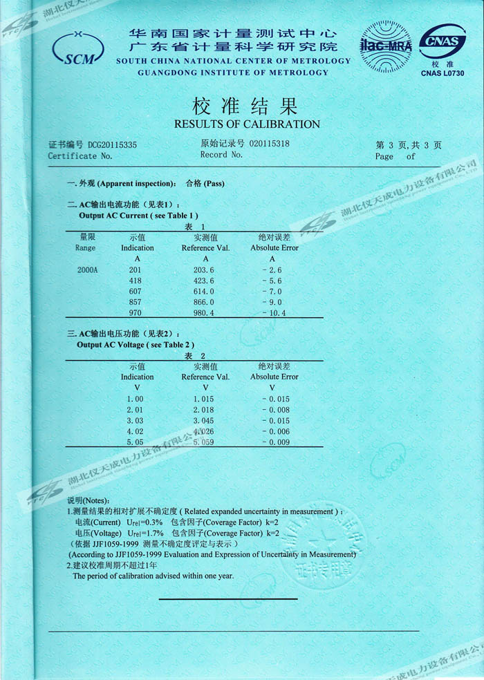 轉載:"YTCDG-2000A大電流發(fā)生器的資質證書" 請注明來源于儀天成電力。 更多技術問題請致電儀天成電力客戶服務:027-87876585,技術部專線:027-87876585,在線客服:719388481